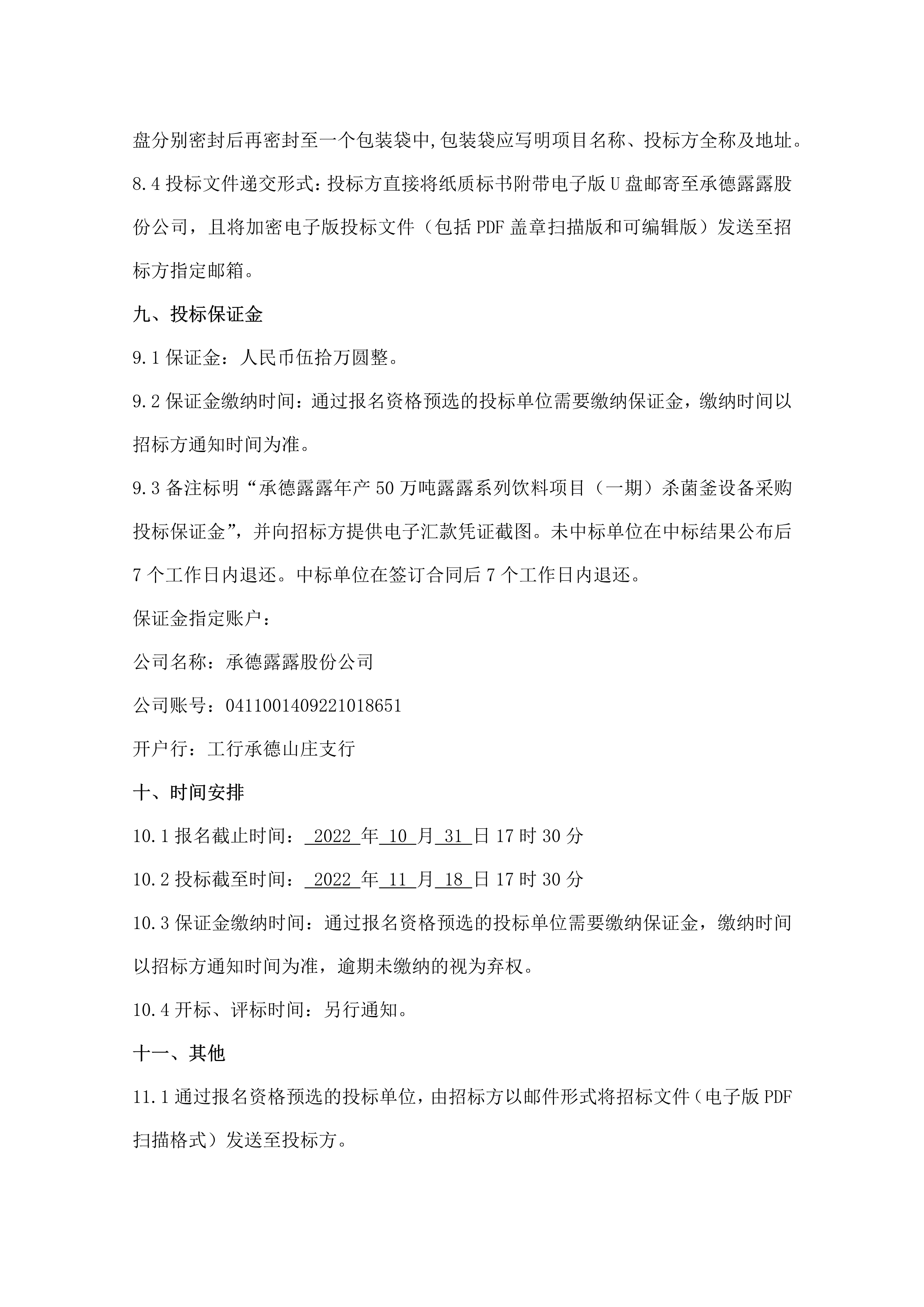 承德露露股份公司年產(chǎn)50萬(wàn)噸露露系列飲料項(xiàng)目(一期)殺菌釜設(shè)備采購(gòu)招標(biāo)公告