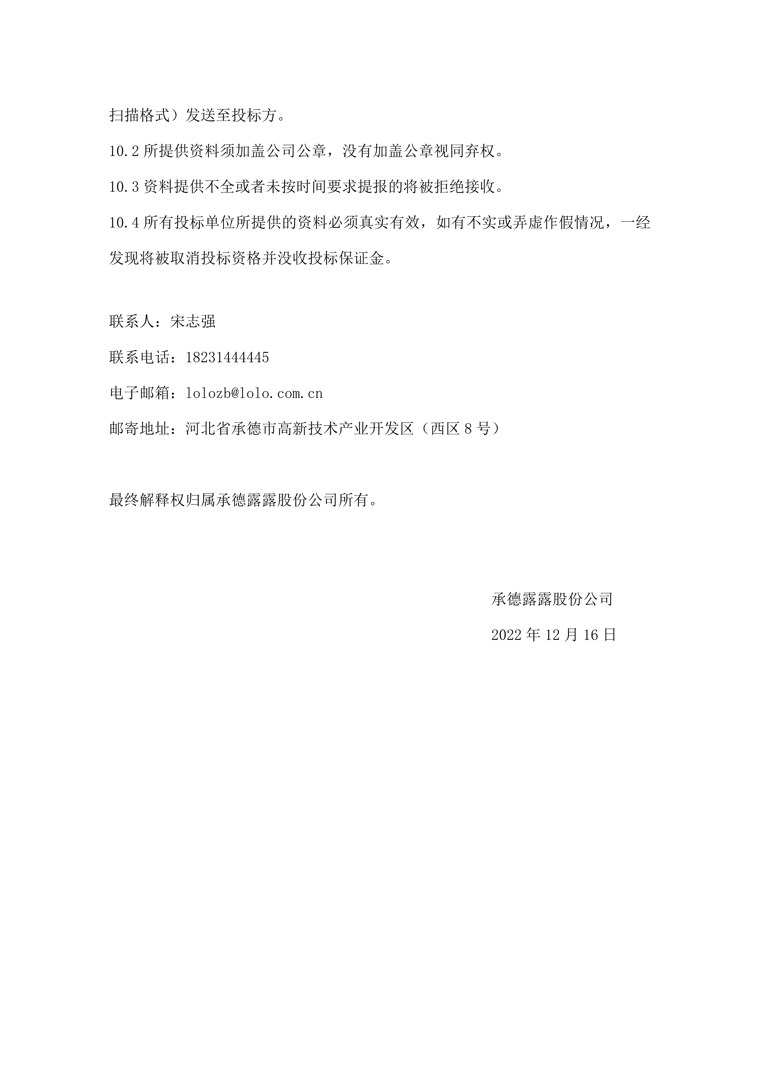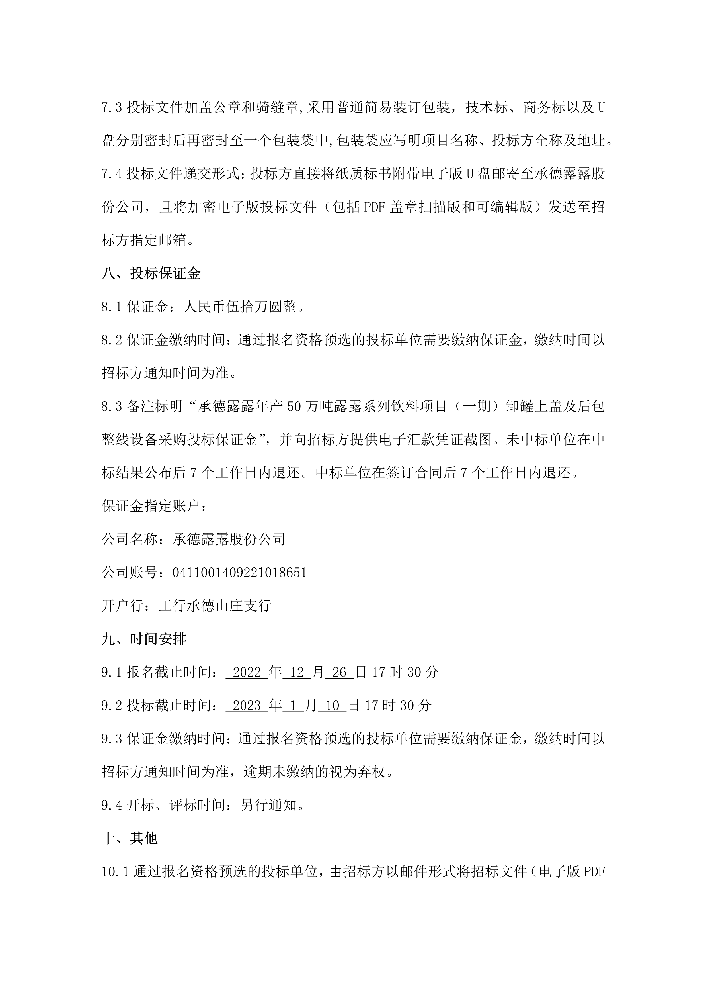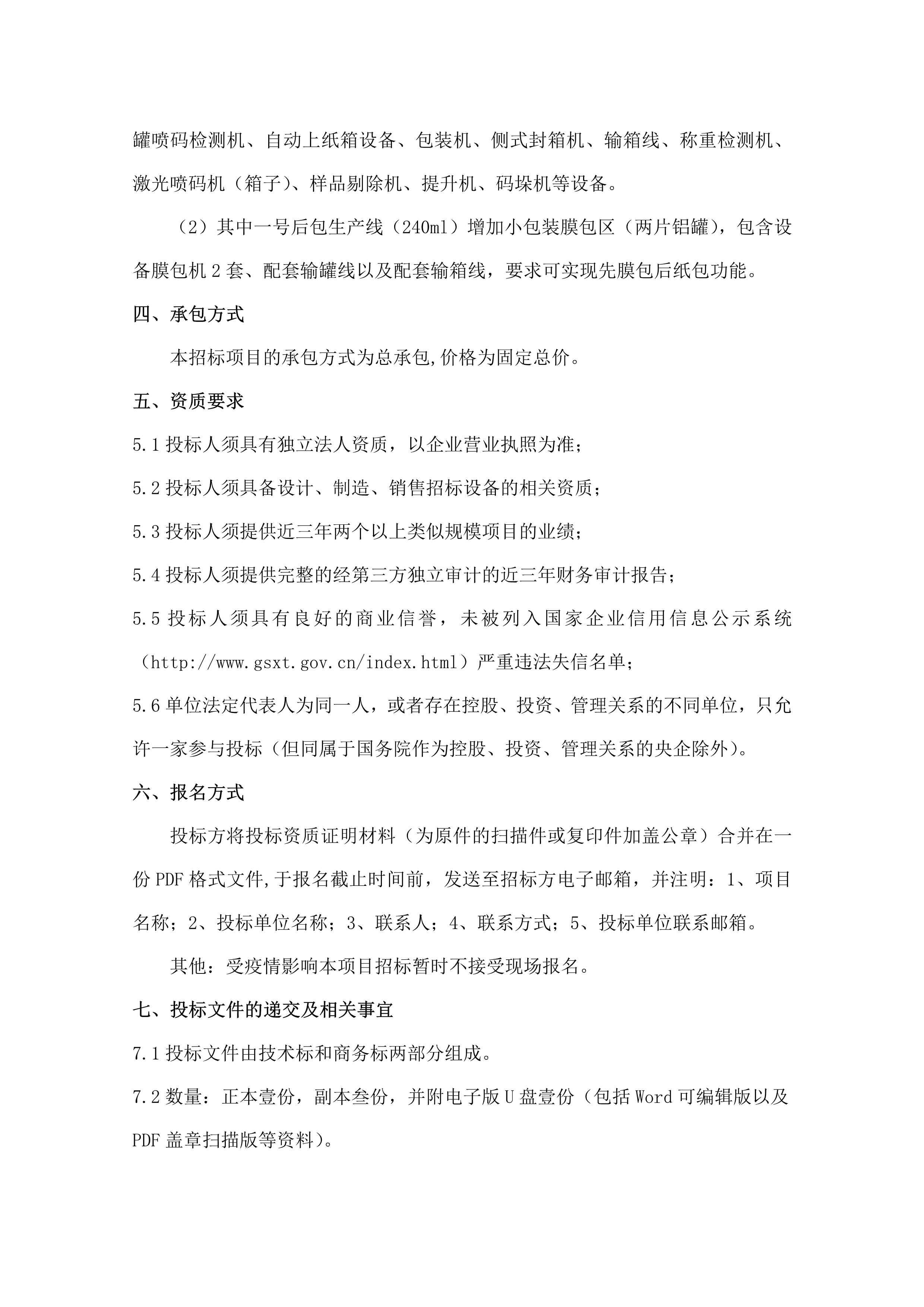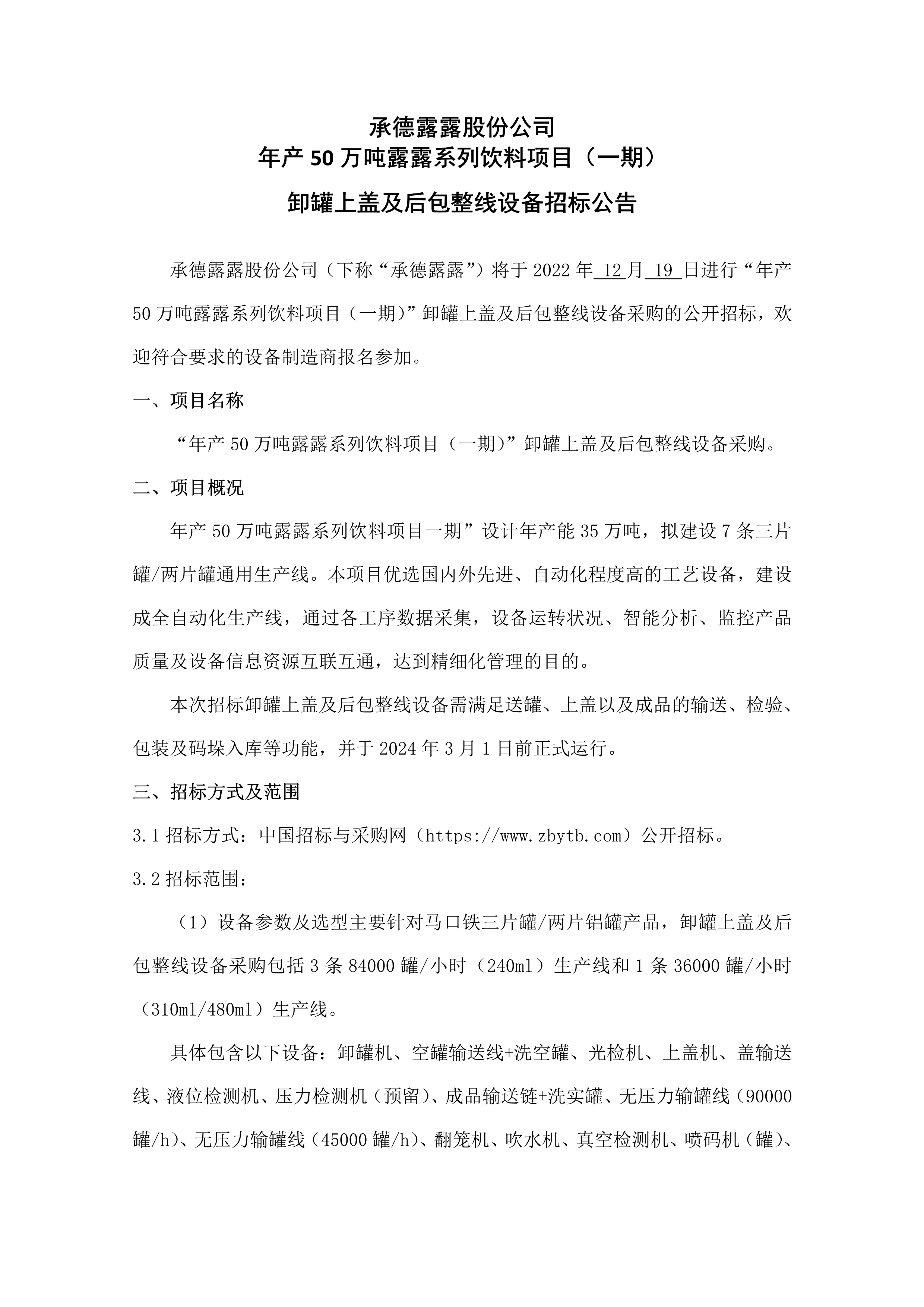 承德露露股份公司 年產(chǎn) 50 萬噸露露系列飲料項目(一期) 卸罐上蓋及后包整線設(shè)備招標公告