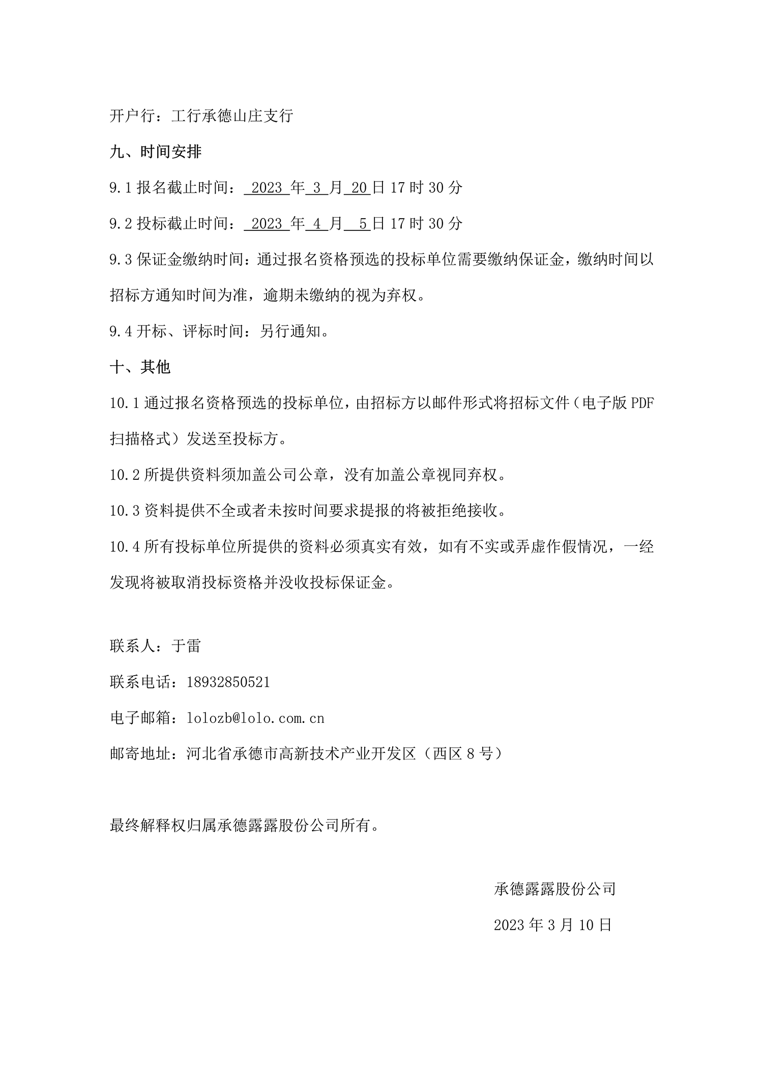 承德露露股份公司 年產(chǎn) 50 萬噸露露系列飲料項(xiàng)目(一期) 智能化研磨配料系統(tǒng)招標(biāo)公告